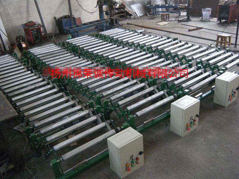 結(jié)構(gòu)形式:驅(qū)動(dòng)方式可分為動(dòng)力滾筒線和無動(dòng)力滾筒線,布置形式分為水平輸送滾筒線、傾斜輸送滾筒線和轉(zhuǎn)彎滾筒線。還可按客戶要求特殊設(shè)計(jì),以滿足各類客戶的要求。標(biāo)準(zhǔn)規(guī)滾筒線內(nèi)寬度為200、300, 400、500、1200mm等。轉(zhuǎn)彎滾筒線標(biāo)準(zhǔn)轉(zhuǎn)彎內(nèi)半徑為600、900、1200mm等。直段滾筒所用的滾筒直徑有38、50、60、76、89mm等。也可按客戶需求采用其它特殊規(guī)格。